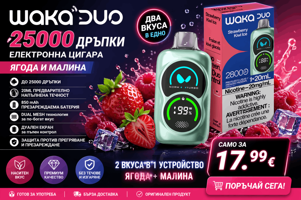Вейп HAPP GR50000 – 50 000 дръпки, Grape Ice / Strawberry Kiwi, 5% никотин, с дисплей и двойни вкусове