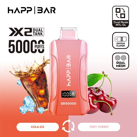 Открий двойната свежест с HAPP GR50000 Dual Cola Ice / Fizzy Cherry – премиум електронна цигара с 50 000 дръпки, два отделни вкуса и възможност за смесване в трети уникален аромат.